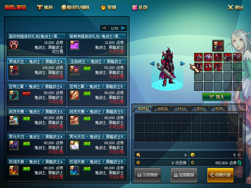 重做商城单件(删除原部分台服皮肤)