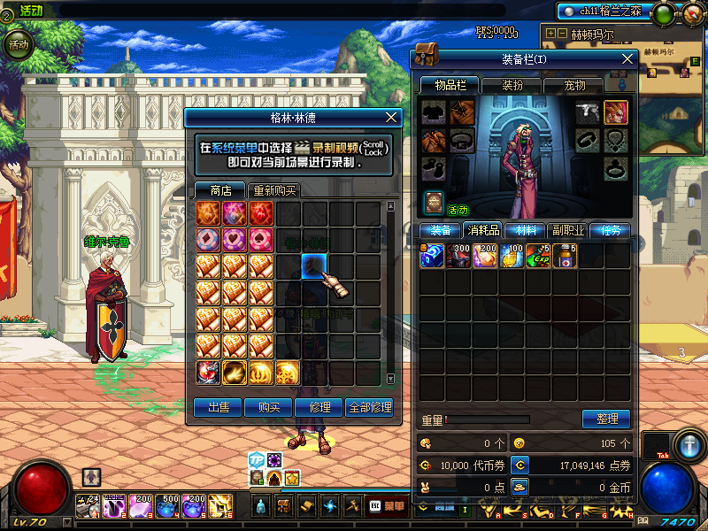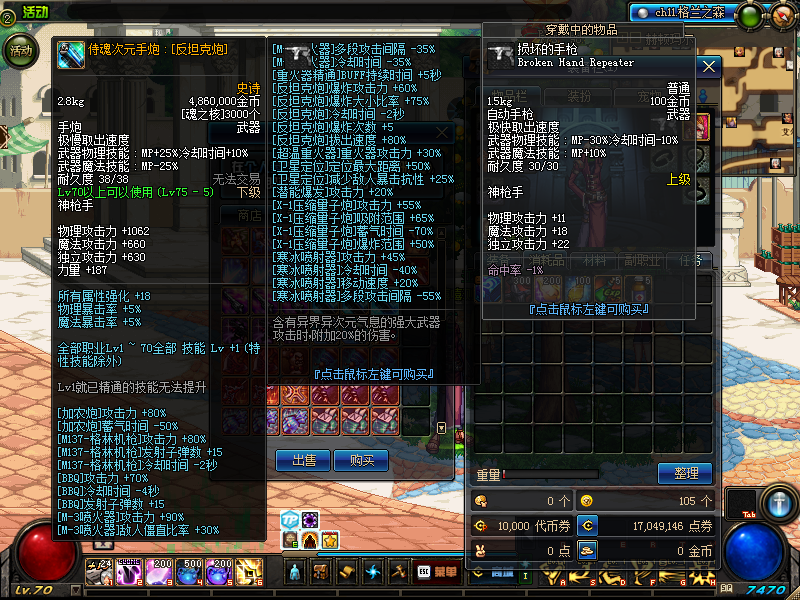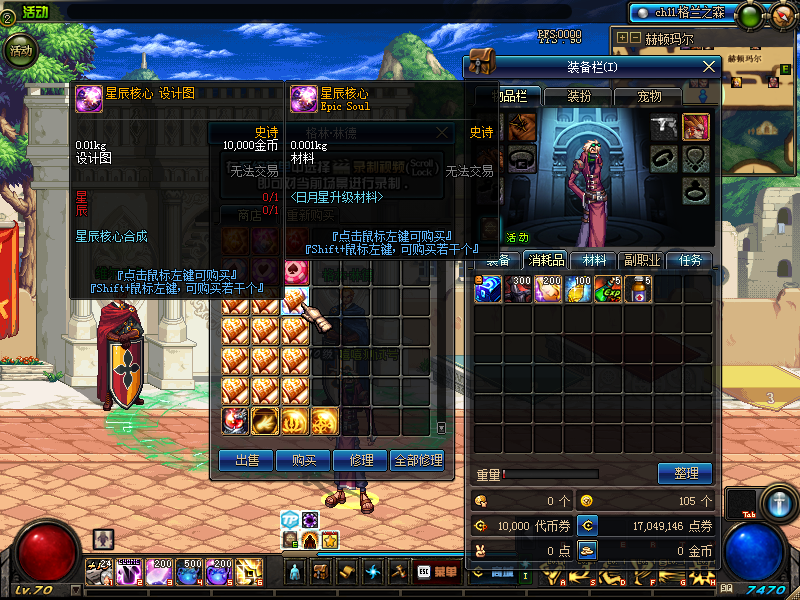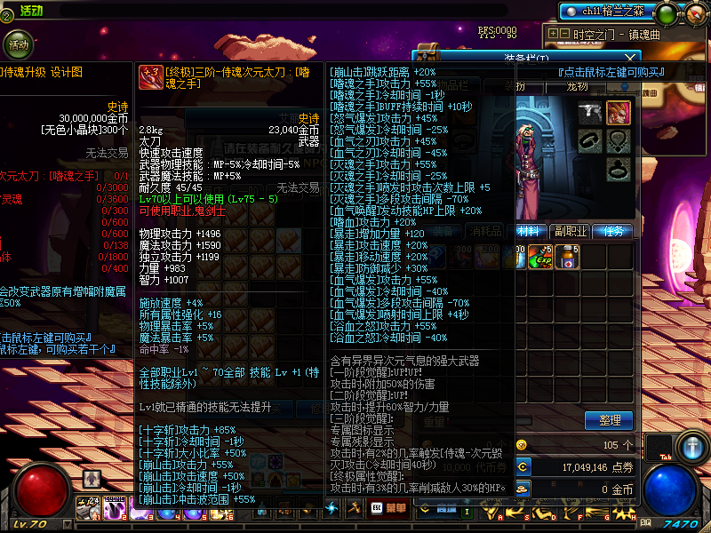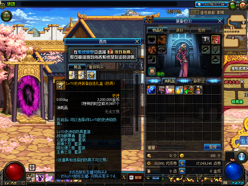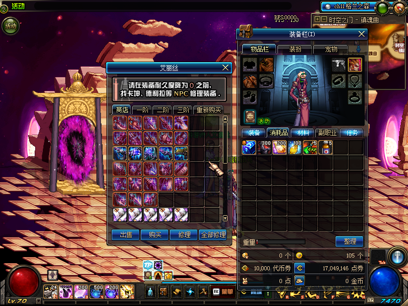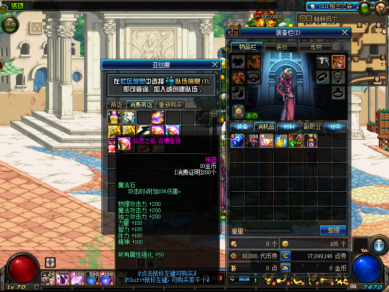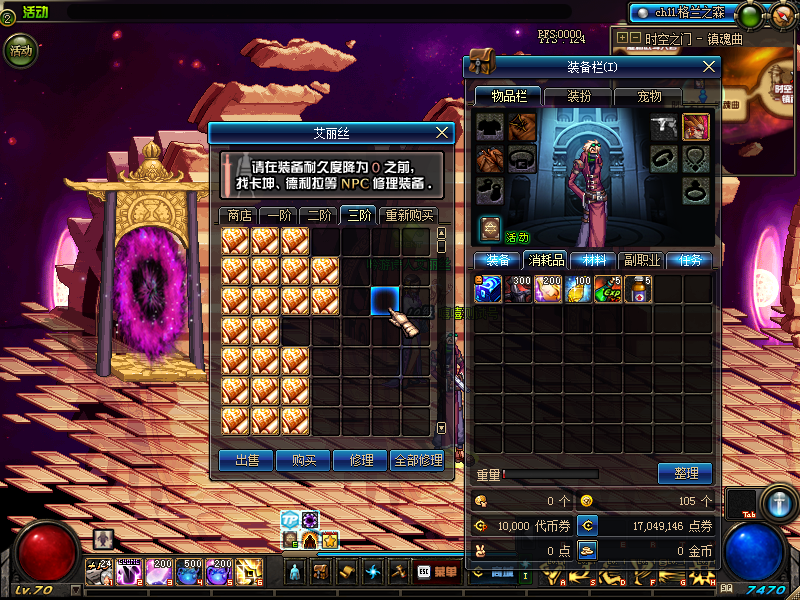 当等级到达70级系统会自动赠送8张+10的装备强化券,以及黄金破魔石(可挑战任意地区深渊派对)。