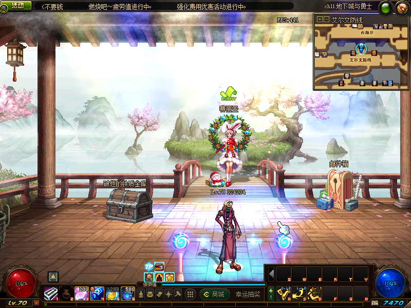 现在你就可以去刷深渊了,深渊在哪里刷?看看聊天框,有城镇飞机,可以直接到你想去的地方!咱们这里直接去素喃!然后直接往左走,就可以看到西岚在那里坐着,真是个懒B啊!希望大家不要跟西岚学习,不要好吃懒做的,做个勤快的人!(虽然我很懒,但是还是来码字写攻略了-。-)