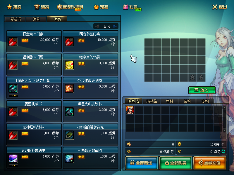 独家的福利副本,福利副本门票每天早上6点都会刷新,每天都可以刷,各种增幅券、无CD药水、矛盾等你来拿!