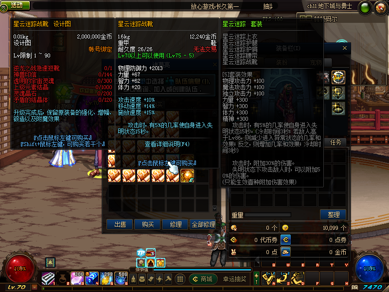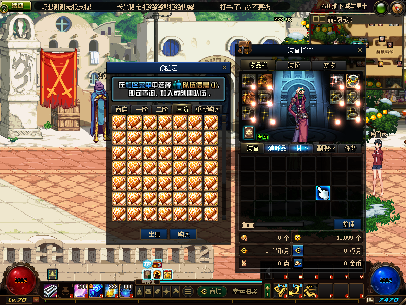 然后装备起来自己!去自己职业导师那里转职好后,在赛利亚房间就可以购买TP和SP技能书,售价都是10金币一本,可以跟老G或者客服要点起步金币!也可以直接在群里跟大佬们要~咱们服是很和谐的!