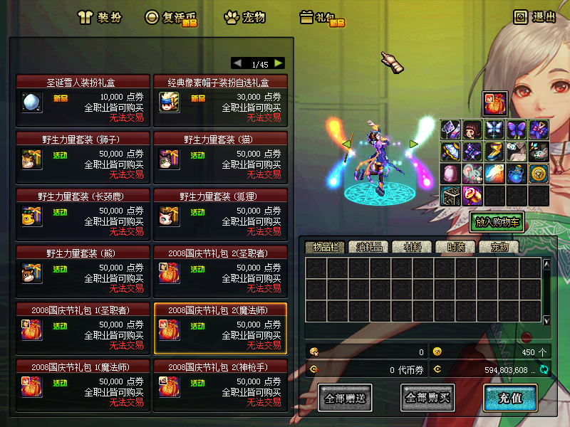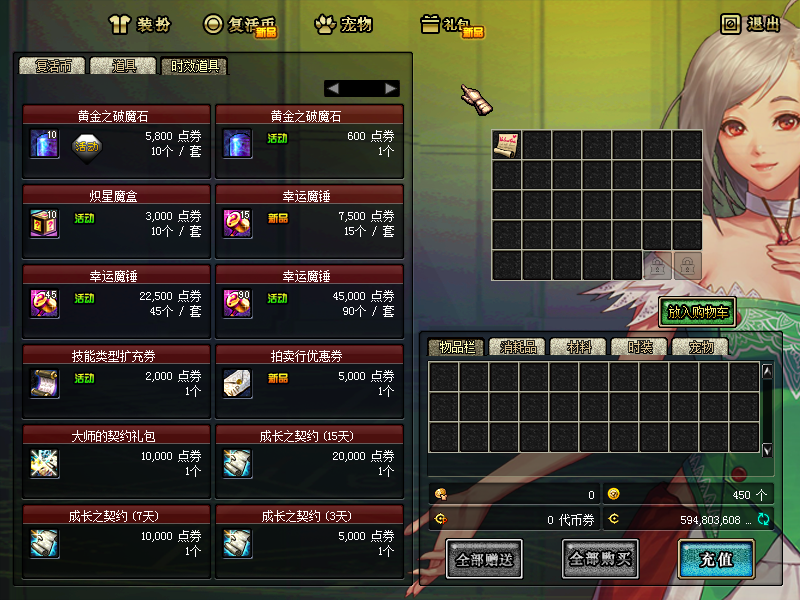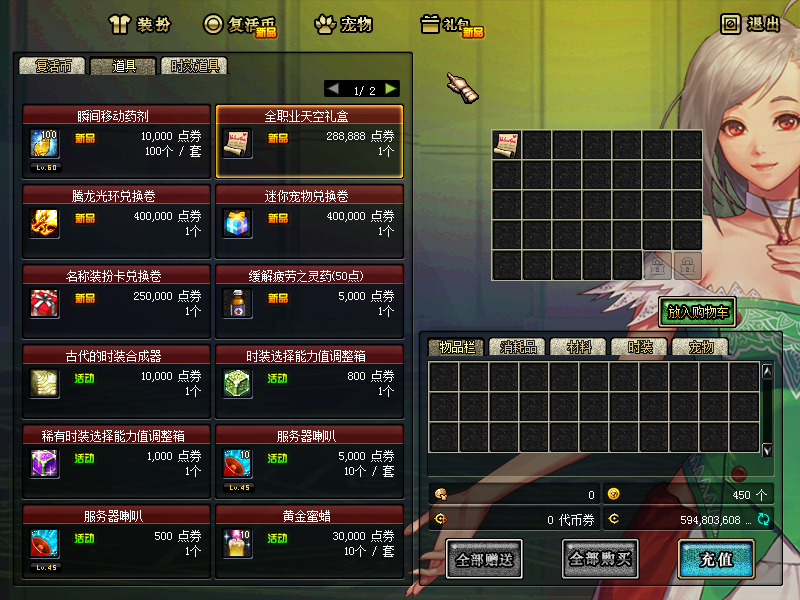 以上消费都会按照1元比例送回忆积分可在赛利亚商店兑换各种极品道具。