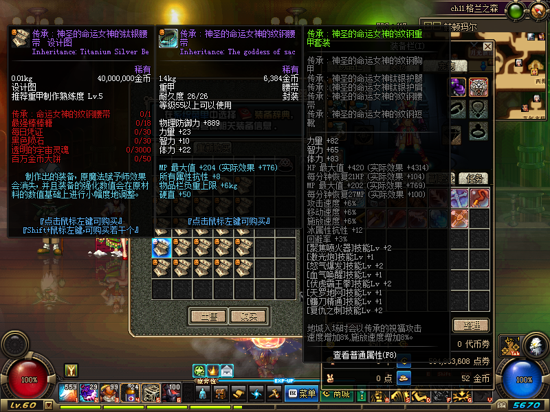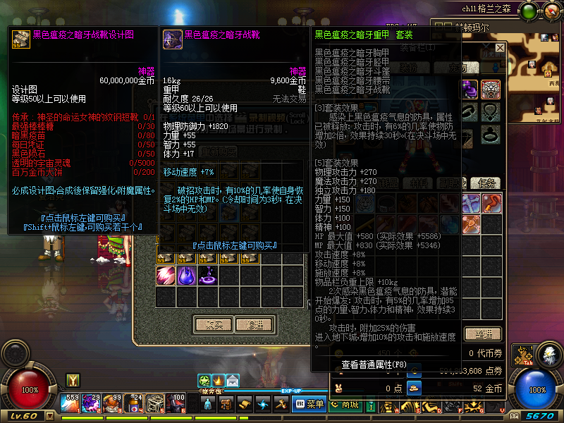 50CC防具-55CC-(做每日获得材料。图纸在天界)-60CC每日任务获得材料)-野猪套装。其余的装备各种SS刷深渊或者土豪抽奖。