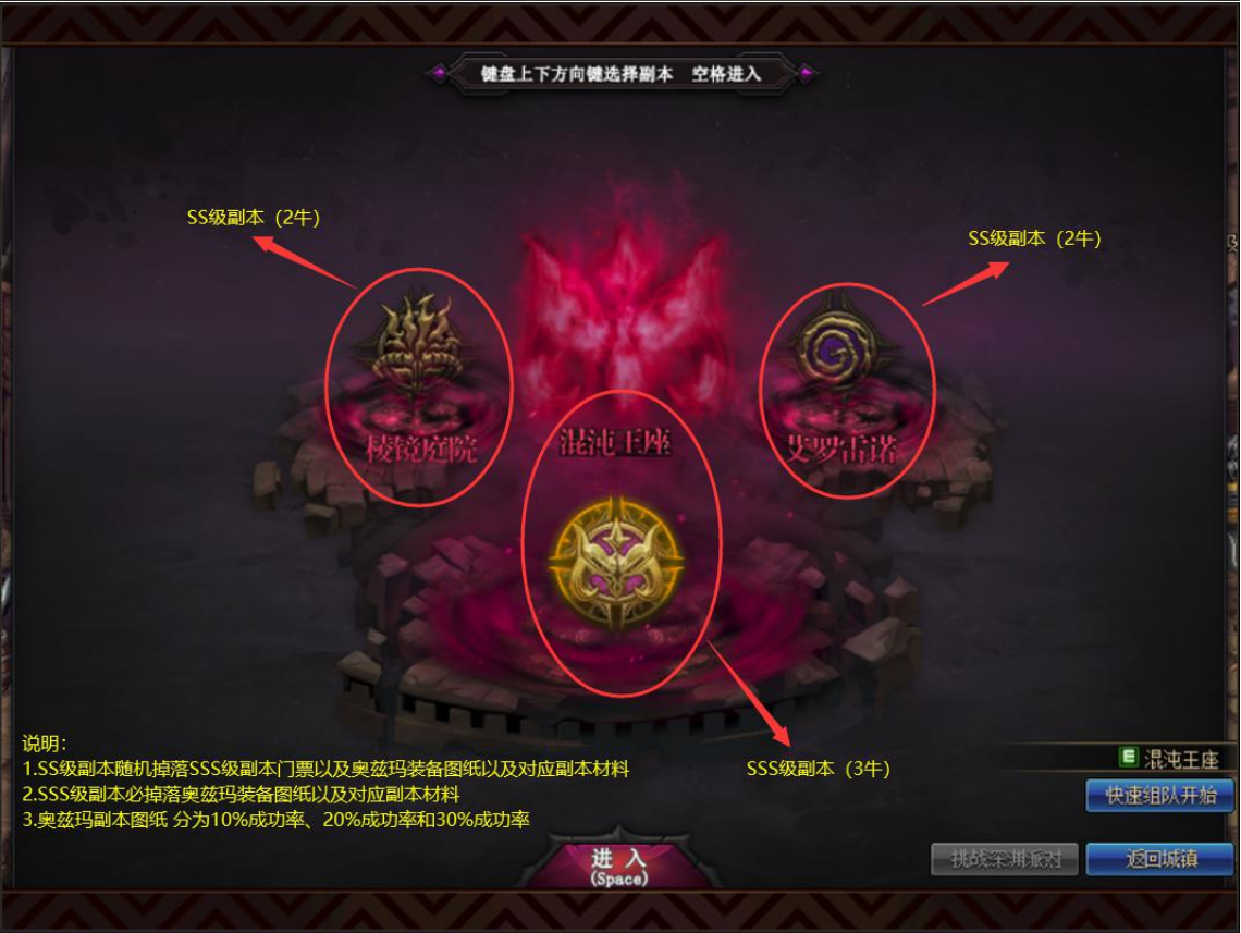 副本产出:混沌的怨念、恐怖的豆豆、绝望的豆豆、毁灭的豆豆、奥兹玛装备升级图纸