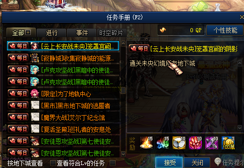 切记:每个副本进之前一定要查看一下是否有任务,任务奖励很丰厚、