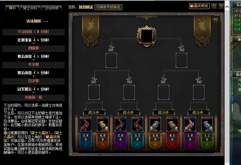 1:马战大竞猜分为 骑士大晶体、骑士小晶体、