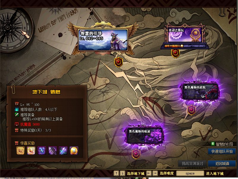如果运气好,直接可以刷一套智慧引导的神话装备,就可以进行下一步了。