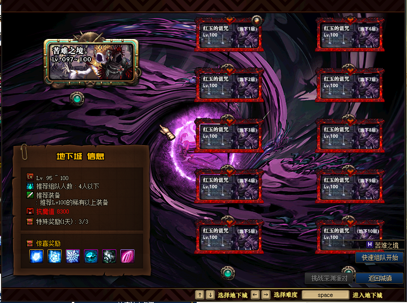 冥域时空副本 相对前两者爆率都高、难度对应也高一些