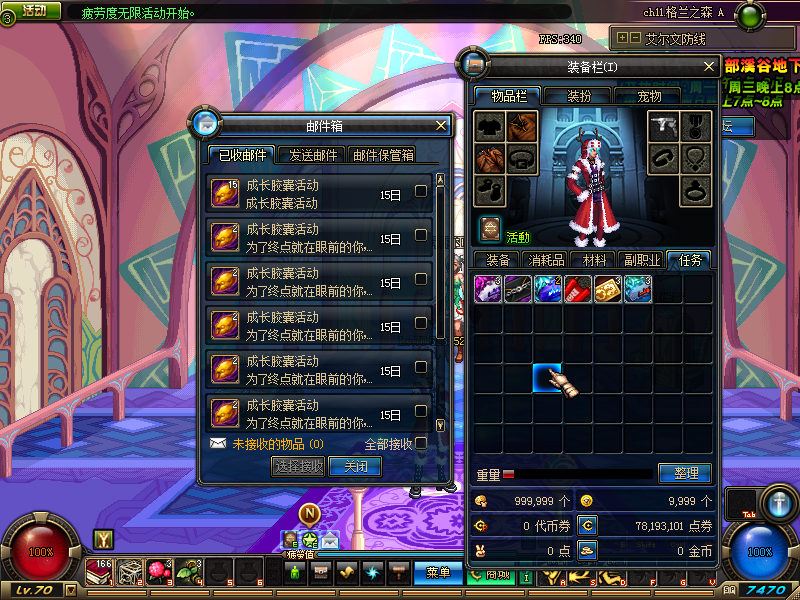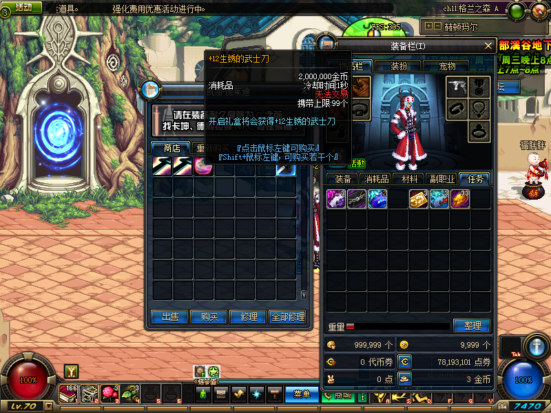 中概率:+12强化卷+13强化卷,装备合成器,天空合成器,BUFF特色药品。宠物等。