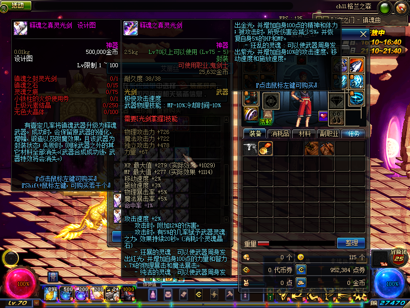 素楠地区NPC艾丽丝商店售出升级图纸,使用[镇魂系列武器]升级