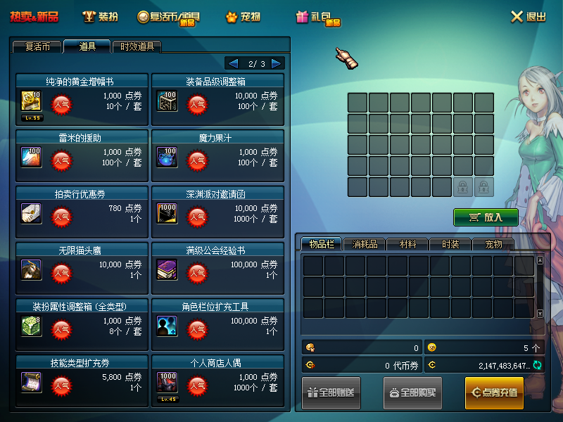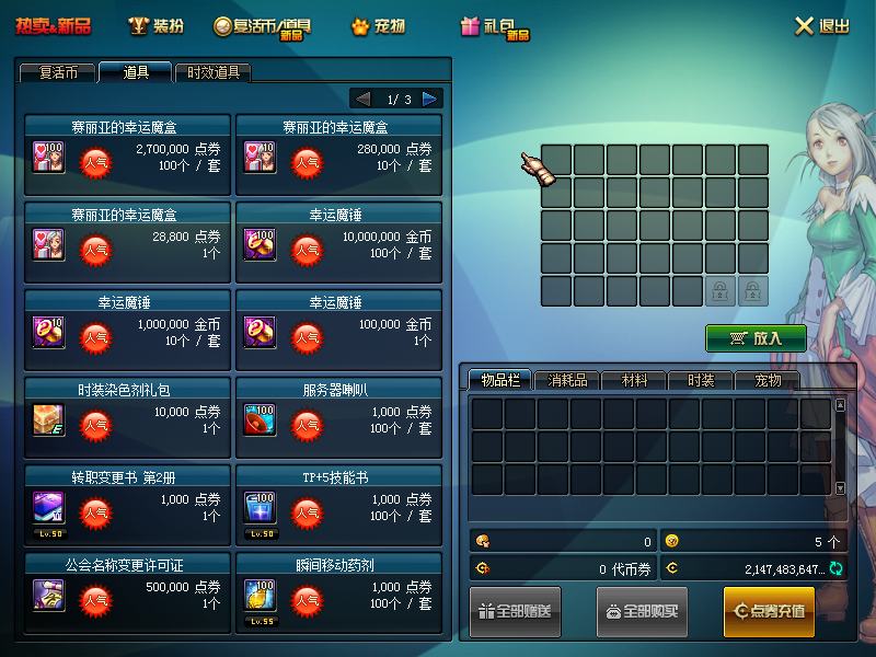 1:上线找赛丽亚可以白嫖以下道具: