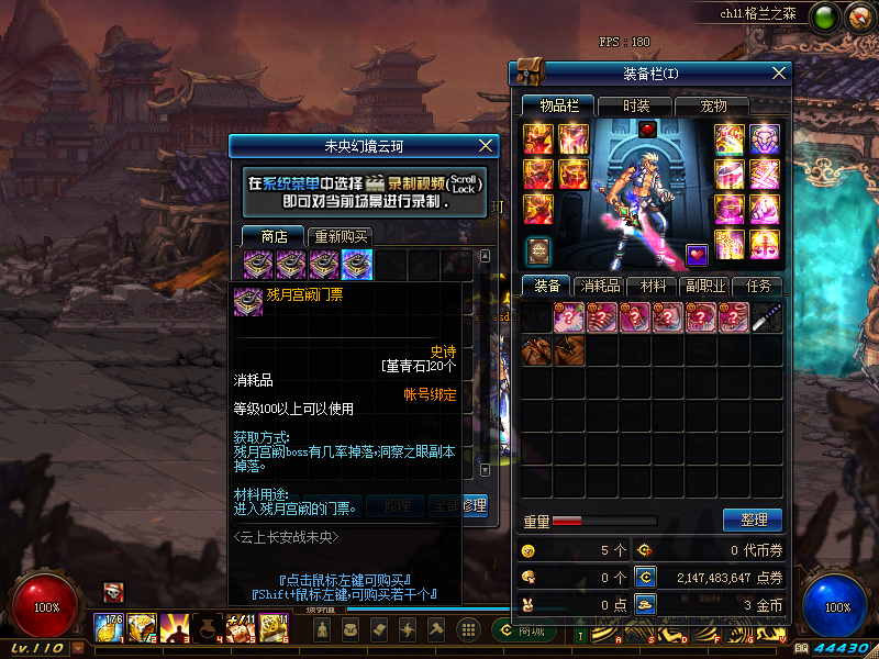 副本产出:100SS 武器、100SS 防具、100SS 首饰、100 神话上衣、手镯、耳环