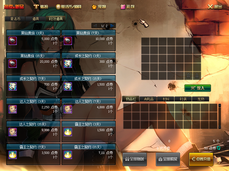 1. 商城只有普通保护券,+10增幅券 5w/个,+12强化券 1w/个 已完成