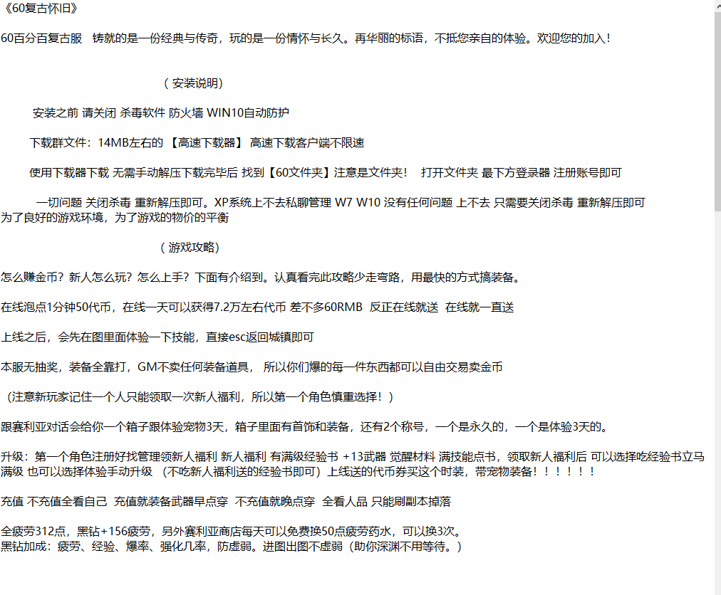 60级纯复古、商业端、拿到手就开!自开版本包售后
